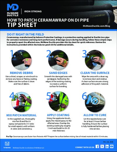 There may be a time when you must repair the glass lining of your Ductile iron pipe due to a field cut or improper handling. Patch it correctly with this step-by-step tip sheet.