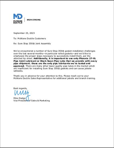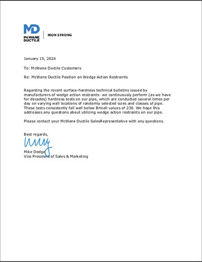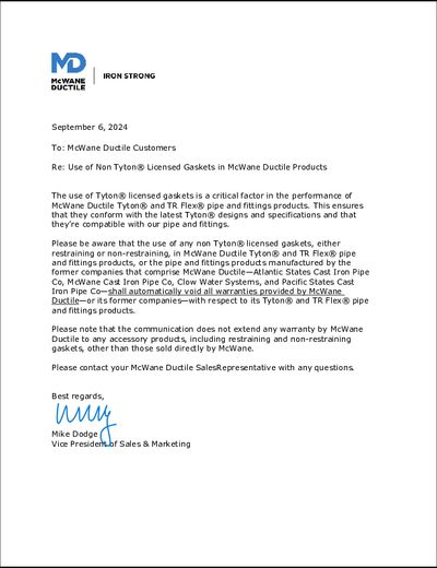 Technical Bulletins are important notifications pertaining to McWane Ductile products and installation practices. Please see the documents below and reference them as appropriate.