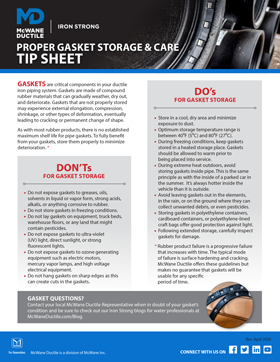 - Keep the Tyton gaskets warm and flexible during cold weather to ease installation.
